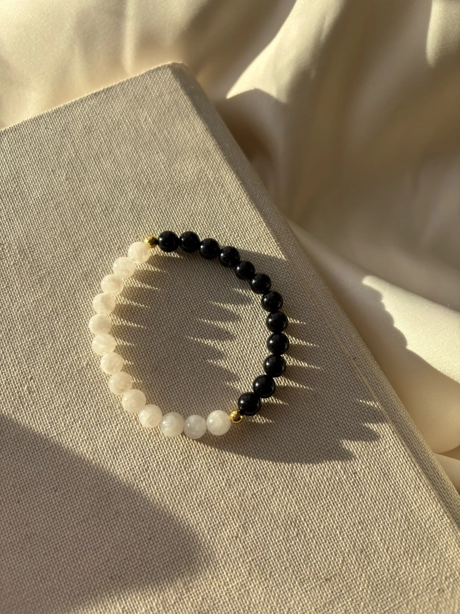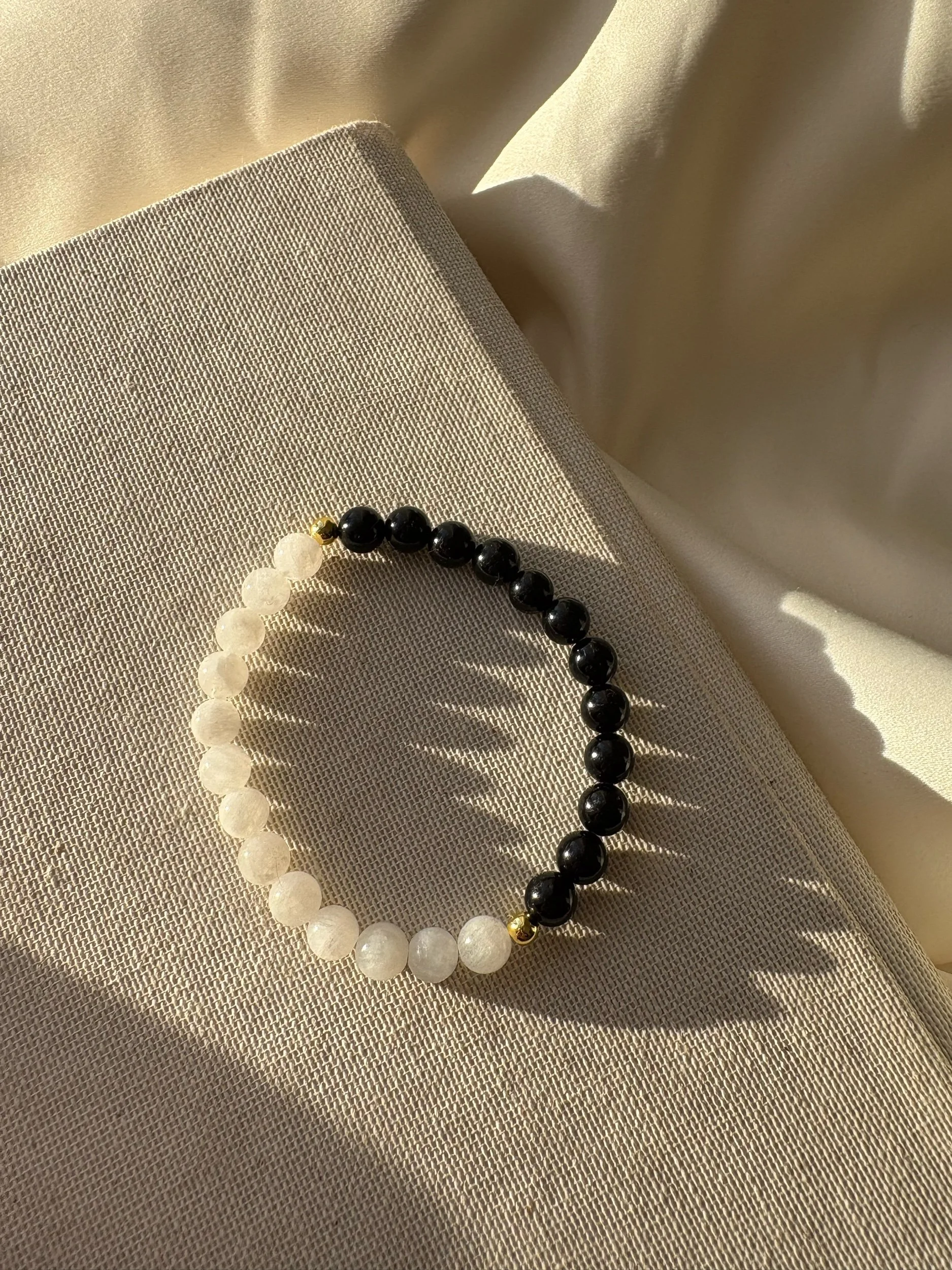 This Moonstone and Black Tourmaline bracelet is a powerful union of light and protection.