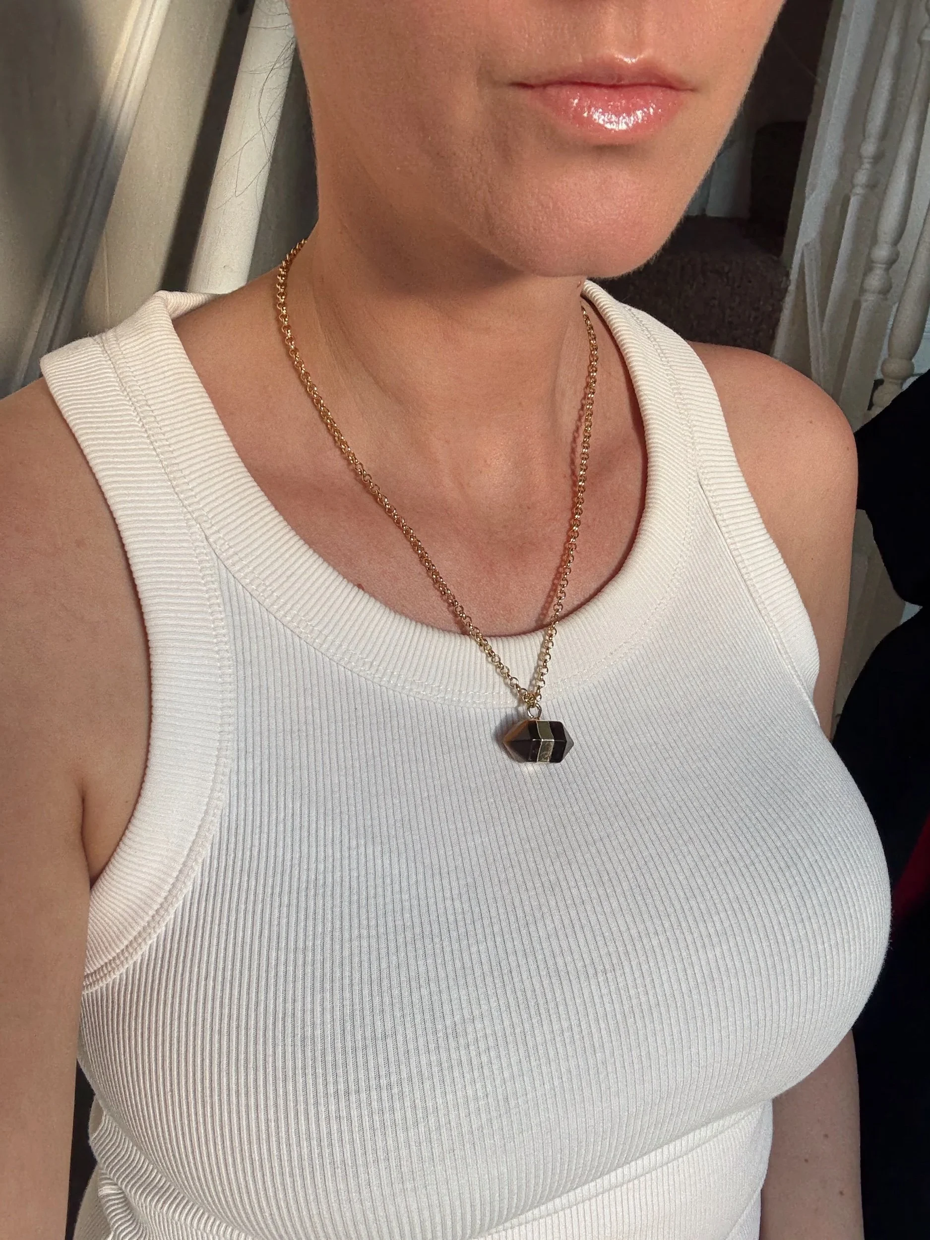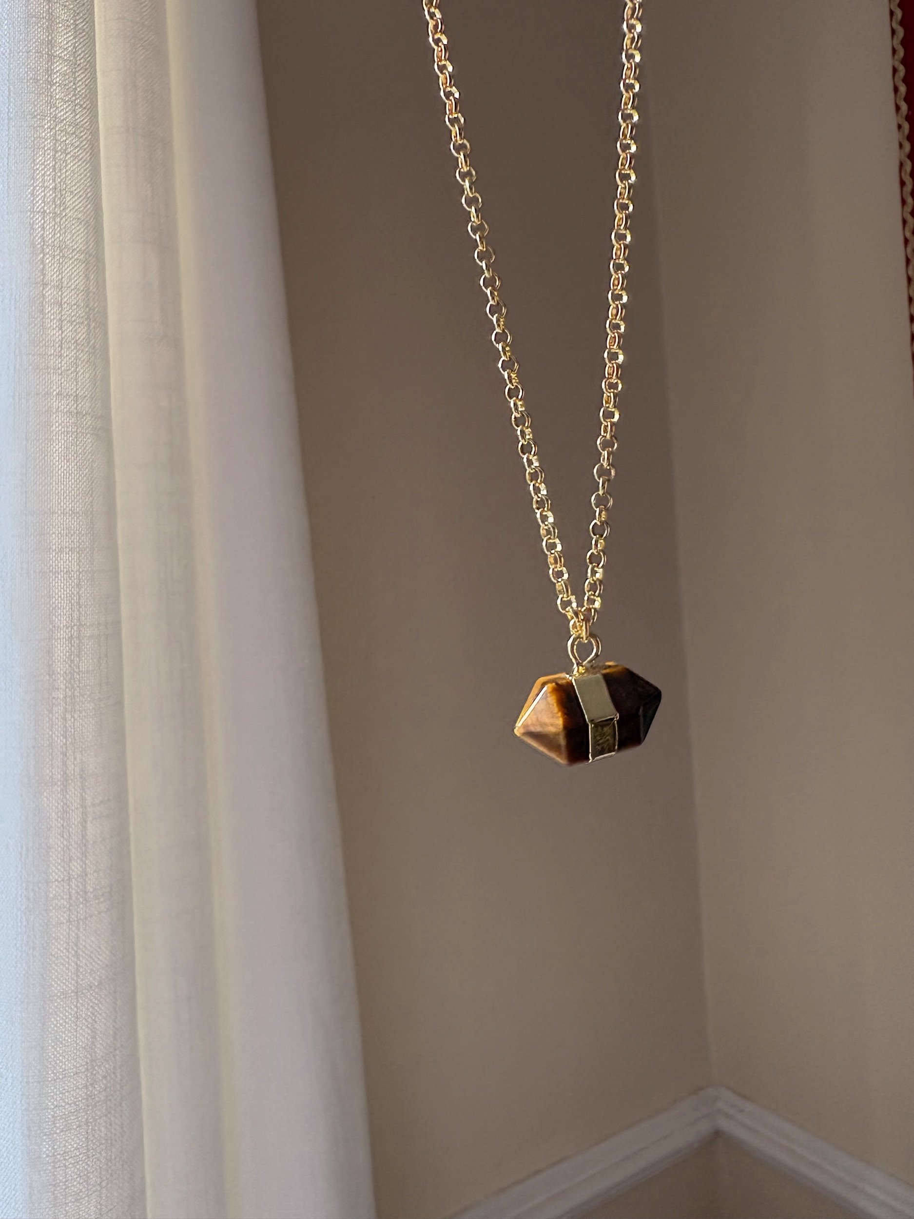 Beautiful tigers eye pendant on 18k gold plated rolo chain necklace - 17 inches