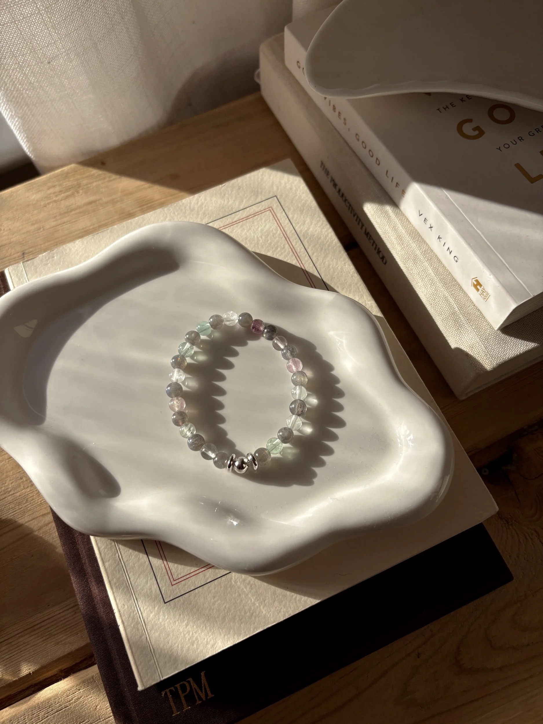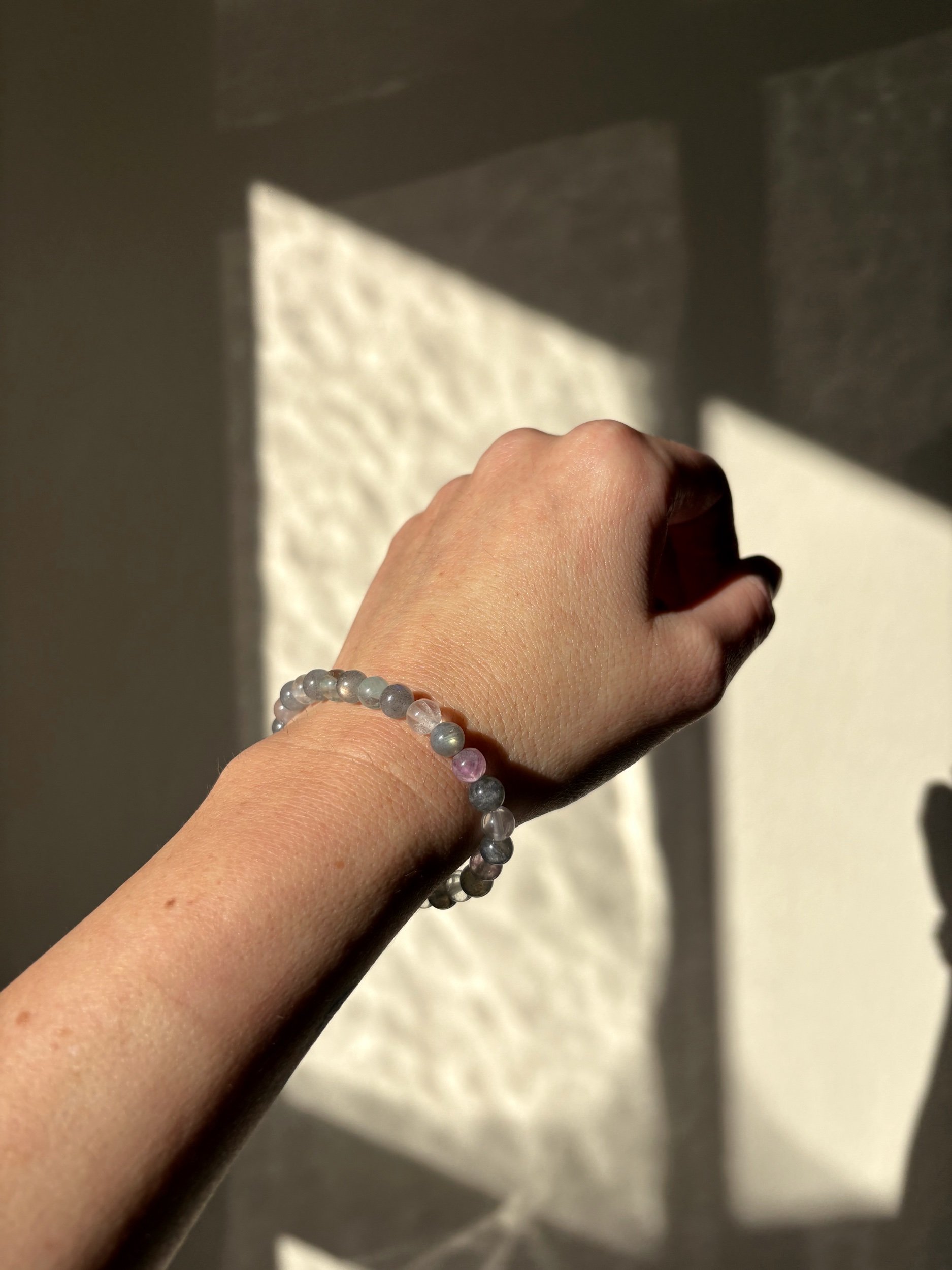 This handcrafted bracelet blends the intuitive magic of Labradorite with the mental clarity of Fluorite, creating a radiant energetic companion for dreamers, artists, and conscious creators.