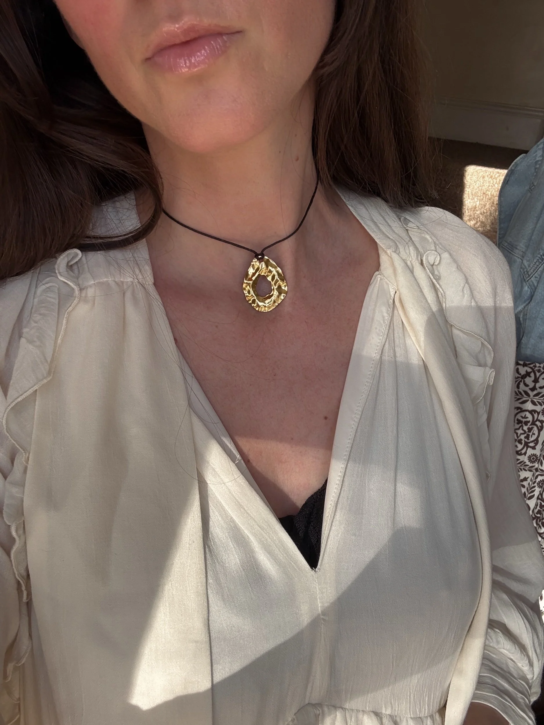 Shop › The Rhea pendant Image 1 of 4 Image 2 of 4 Image 3 of 4 Image 4 of 4 The Rhea pendant £15.99 Real 18K Gold Plated, 31x25x2mm Pendant on vegan cotton cord Add To Cart Added! Real 18K Gold Plated, 31x25x2mm Pendant on vegan cotton cord Reviews Reviewer Name Review Date Star Rating Description Posted on Etsy Product Show More