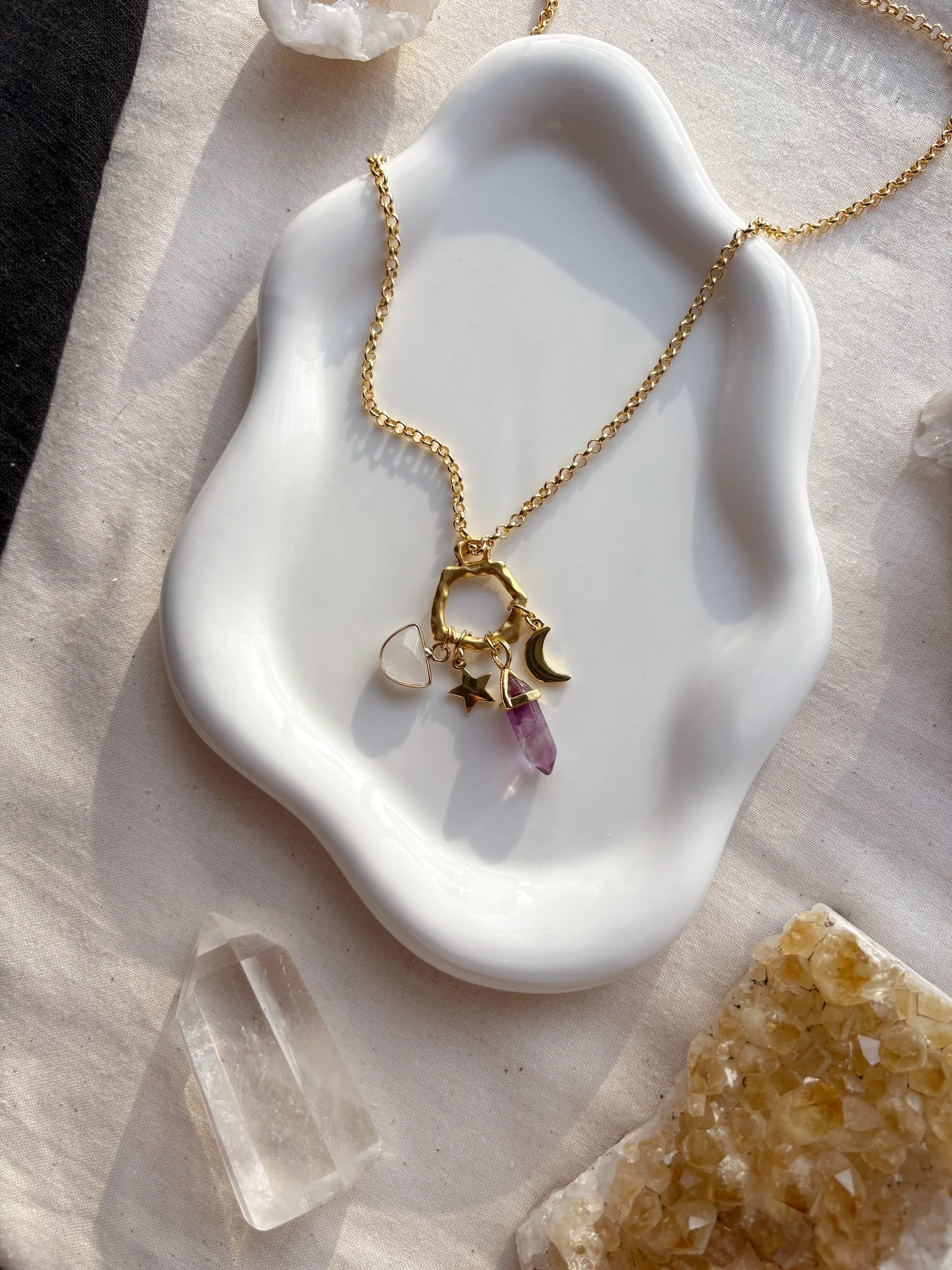 Categories: All The Sunset Collection NEW Crystal Club Mama jewellery Necklaces Bracelets The Lucky Charms Collection Sale Silver Earrings The Everyday Golden Edit Bridal/Bachelorette Mermaid Treasures Prints Home All / The Sunset Collection Quick View Magenta Moment ~ bracelet £14.99 Quick View The Sunset Talisman Necklace £32.99 Quick View Majestic Sky ~ crystal necklace £32.99 Quick View Rainbow sky ~ bracelet £14.99 Quick View Twilight Night ~ bracelet £14.99 Embrace the power of crystal jewellery —a fusion of self-expression and the energy of the earth, harmonizing your spirit and style